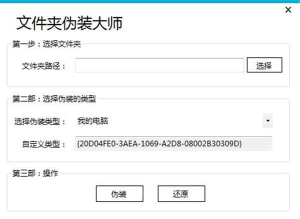 2.点击按钮找到要伪装的文件夹。你可以完成伪装。