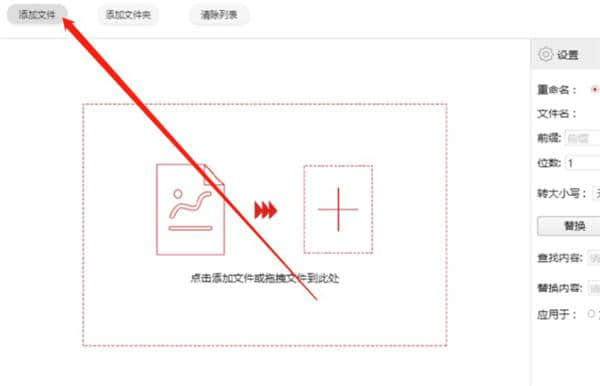 1.首先,我们在第一步打开软件后,可以点击软件界面左上角的添加文件按钮,然后点击添加需要重命名的TXT文件。