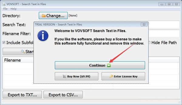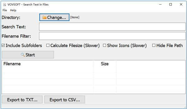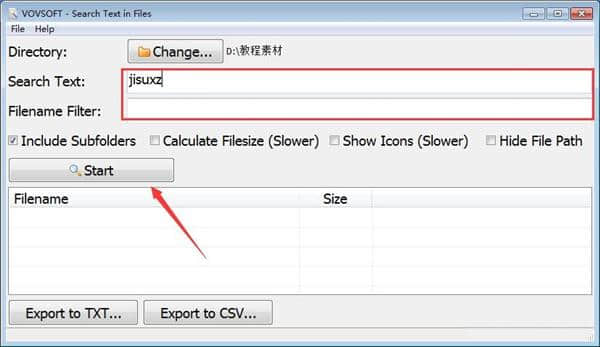 1.输入搜索文本和文件名过滤器,然后单击开始按钮。
