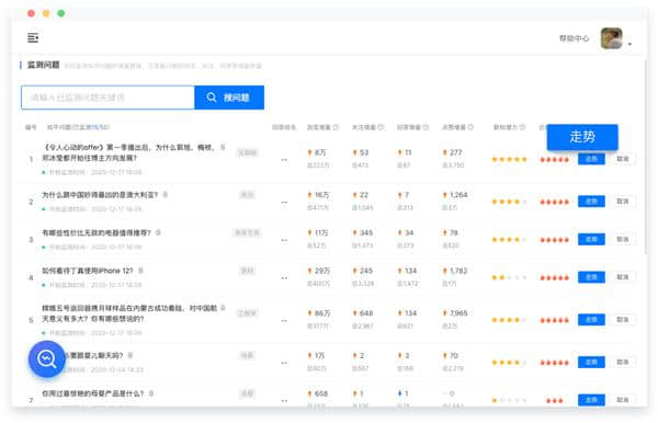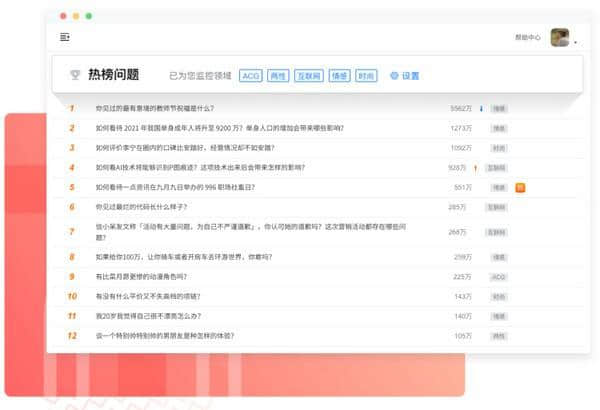 3.监控问题功能,用户可以在知乎搜索热点列表页面和搜索页面。