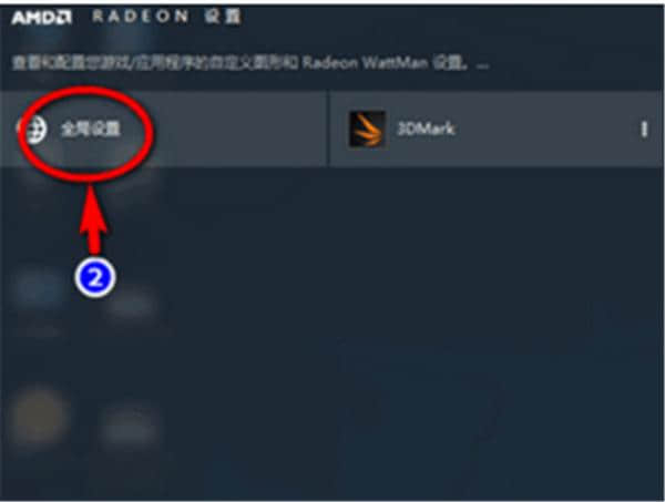 2.进入二次设置界面,点击全局设置。如果只想在个别程序或游戏运行时实现超频,可以点击游戏或软件图标单独设置。