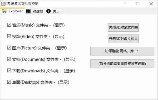 1.支持关闭3D对象文件夹。