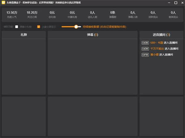 头榜直播盒子软件下载,方便快捷的电脑直播数据监控管理服务软件,头榜直播盒子直播辅助工具可以为您带来全面便捷的直播辅助工具,所有弹幕数据都可以轻松管理,各种礼物都可以屏蔽,数据可以轻松显示在不同的屏幕上,并且所有弹幕都可以实时播放。