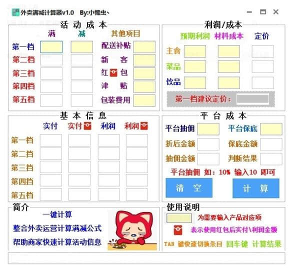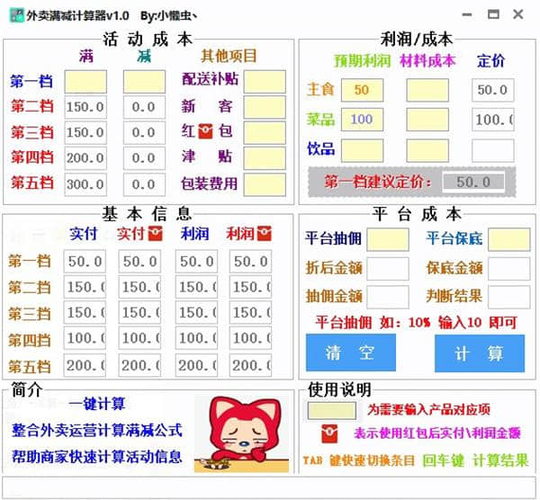 外卖满减计算器免费版免费下载是应用软件分类多用能的外卖满减自动计算器工具电脑软件,创佳软件园小编给大家送上外卖满减计算器软件下载和相关介绍,外卖满减计算器v1.0该款软件应该会让你眼前一亮!特意推荐供您下载!