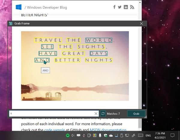 3.可以通过搜索文本、单击单词边框和/或单击“抓取”按钮来完成。