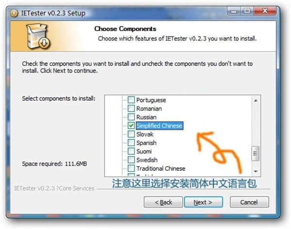 2.选择一些已安装的组件,然后单击“下一步”。