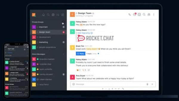 2.使用火箭与你的团队进行公开对话。聊天频道和私人群组。