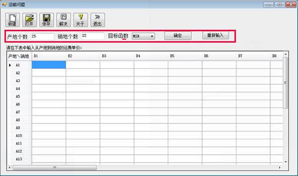 4.点击运输问题分析,直接在软件中生成表格,将你的数据输入表格,然后点击求解按钮进行数据分析。
