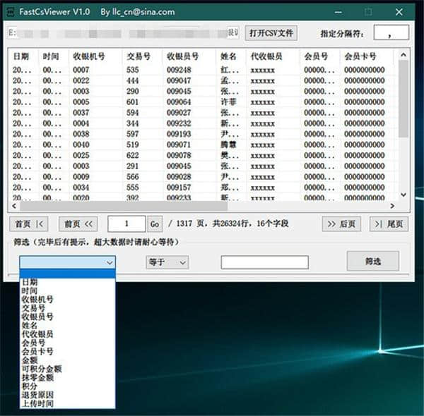 2.提供过滤功能,可以在csv文件中进行一些过滤和搜索操作。