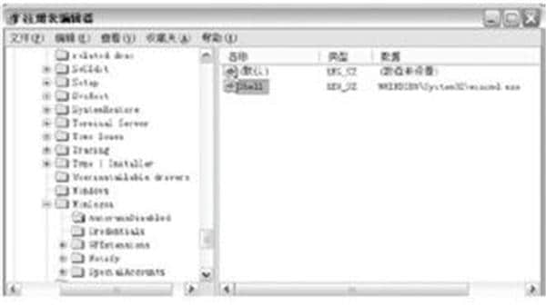 7.其次,右键单击项目“%WINDIR%32wincmd.exeM”,在弹出菜单中选择“删除”。如图所示,在弹出的提示框中点击“是”按钮,将注册表分支的shell值恢复到原来的状态,即删除该数据结果的wincmd.exe部分。如果您想要快速第三方程序创建的启动项目,您可以通过选中“选项”菜单中的“隐藏微软和进程”和“隐藏进程标记”菜单来实现。