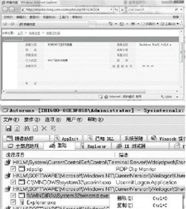 4.从提示框可以看出这是一个木马程序,其病毒特征如下。在谷歌搜索引擎中,以特征名作为关键词进行搜索,得到了图中瑞星公司给出的结果。