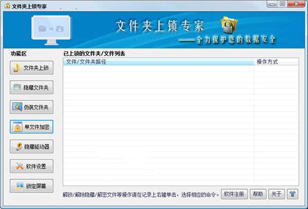 文件夹上锁专家软件下载,一个具有高性能优势的安全加密工具,可以指定文件进行独占管理操作。根据不同加密方法的选择,这些锁定的文件可以在以后轻松访问。您只需输入相应的密码即可打开文件进行修改。