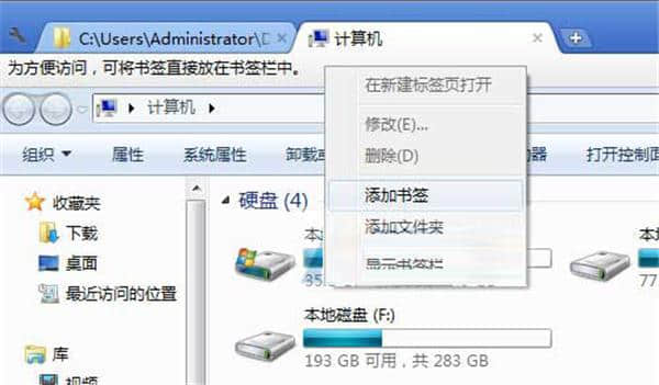 2.为了方便访问,书签可以直接放在书签栏,右键可以添加书签和文件夹;