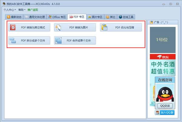 1.在这个网站上下载并解压。双击”。. exe "文件打开破解版的我的ABC软件工具箱。可以看到一般的文件处理、办公区、pdf区、图片区等功能。