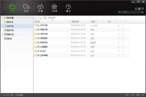 3.团队的各类文档按照多级目录进行分类归档,可以通过拖拽的方式进行上传下载。