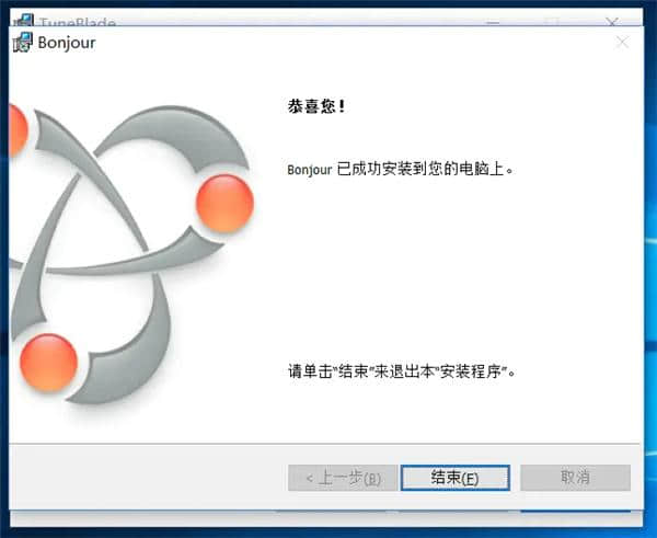 8.8点后点击结束按钮。Bonjour已成功安装。