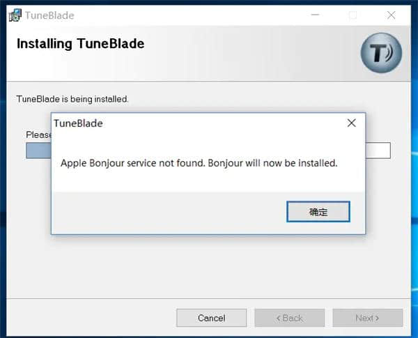 4.如果没有安装ITunes,会弹出需要安装Bonjour。单击确定。
