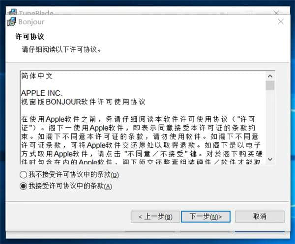 6.选择接受许可协议,然后单击下一步。