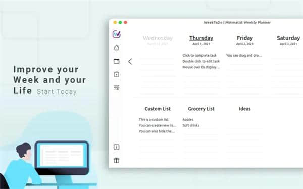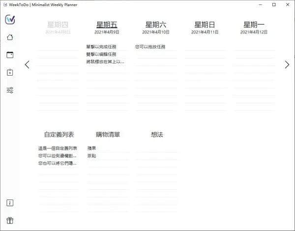 1.免费极简每周计划器,用各种程序功能调用更高效。