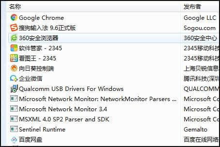 2.这里是程序和功能页面,显示当前计算机的程序软件。