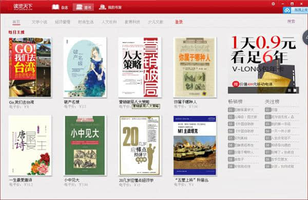读览天下读读宝免费版免费下载是用于应用软件多功能的电子书杂志文档阅读用途的电脑软件,创佳软件园小编推荐读览天下读读宝软件下载和使用介绍分享给大家,小编亲测,并了解了读览天下读读宝v3.0这款软件的过人之处!值得一用!快来选一个适合您的吧!