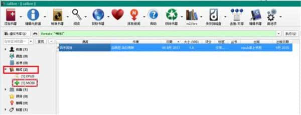 6.等待软件工作。完成后,可以看到左边有两种格式。点击Mobi格式,可以看到右侧显示区也有这样一本书。
