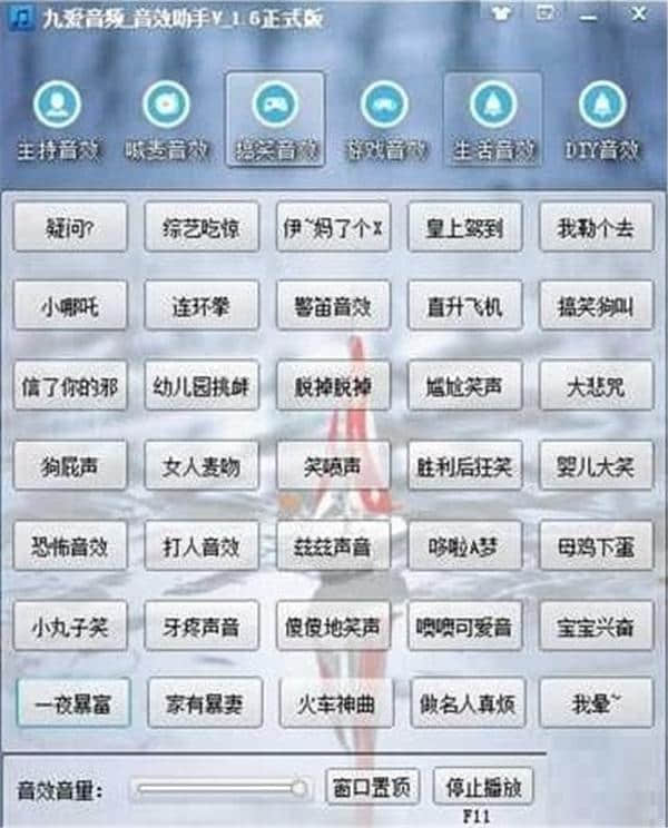 九爱音频音效助手软件下载,众多有趣好玩的音频声音模板辅助工具,九爱音频音效助手(音频声音辅助工具)可以为你带来更方便快捷的声音服务功能。您喜欢的音效可以在这里找到并设置,各种不同的服务功能可以轻松管理,可以让您的直播或效果更加有趣有趣,音频效果也可以轻松设置。