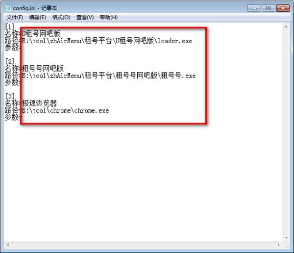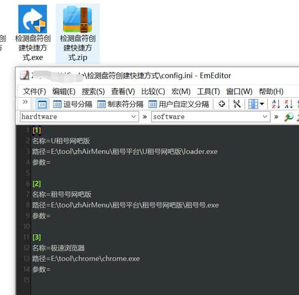 1.下载软件后,打开配置文件,输入并保存需要建立快捷键的软件地址;