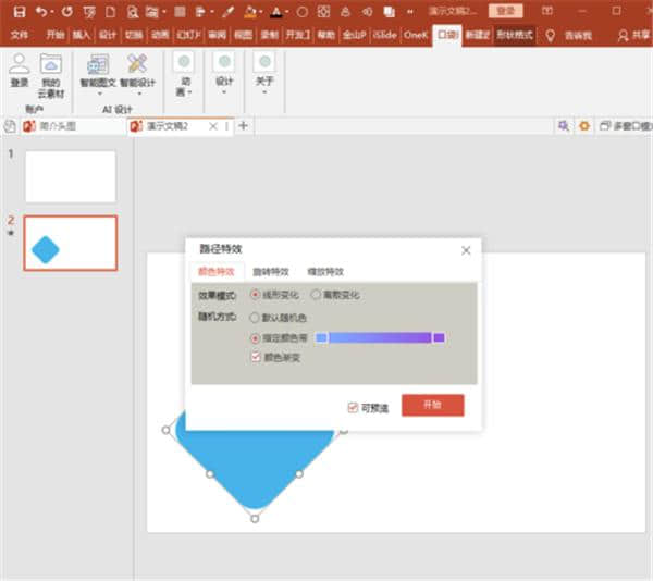 6.在打开的路径效果窗口中,可以为路径动画设置颜色效果、旋转效果和缩放效果。