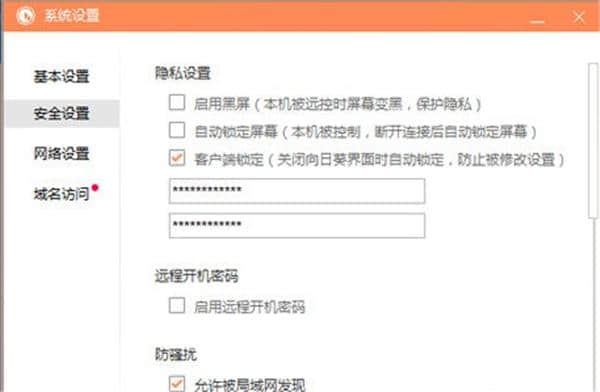 在安全设置【隐私设置】中,可以设置“远程控制时黑屏”和“远程断开连接后自动锁屏”,这是向日葵客户端7.5版推出的一项新的安全措施,确保您在远程时的隐私。