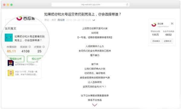 1.查看当前文章和同一条推文的其他文章的阅读量和喜欢度。