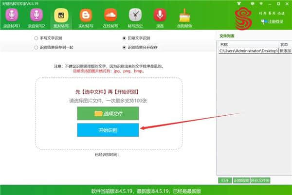 5.识别方式和保存方式设置好后,我们点击界面中的“开始识别”按钮,开始识别图片上的文字。