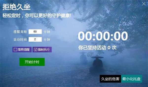 1.打开软件,设置时间间隔,更好的提醒你不要久坐。