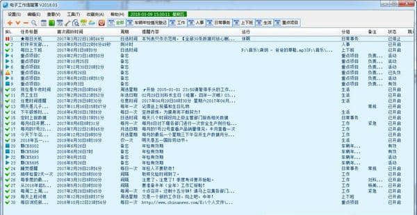 电子工作提醒簿免费版免费下载是应用软件的一款快捷方便的多工作任务提醒工具电脑软件,创佳软件园小编推荐电子工作提醒簿软件下载和使用介绍分享给大家,也许电子工作提醒簿v2021.03.1的存在为大家提供了别样选择!欢迎大家下载!