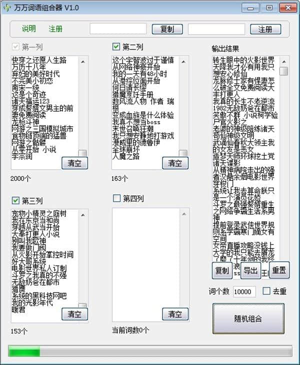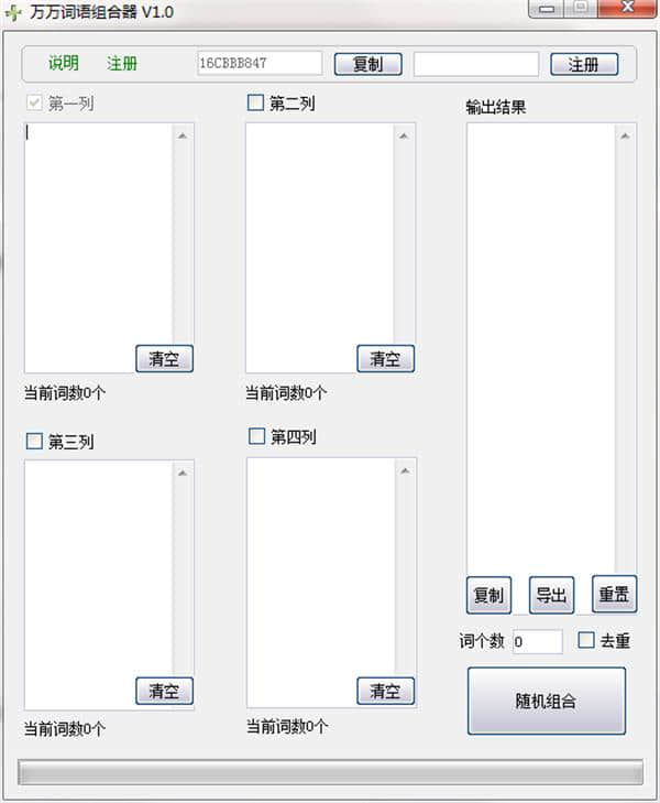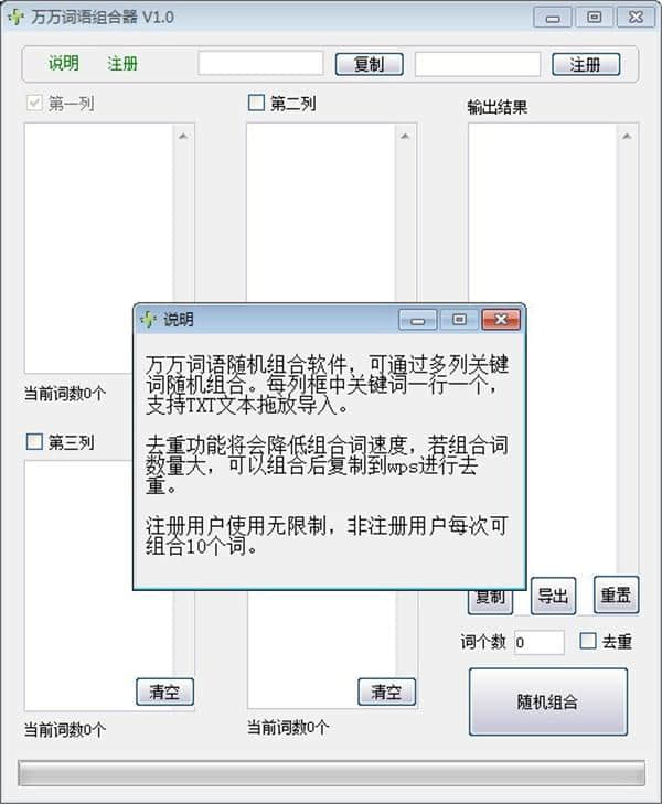2.去重功能会降低组合词的生成速度,所以在组合大量词时要小心。
