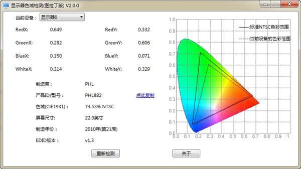 显示器色域检测工具软件下载,方便实用的读取和检测显示色域值的工具,显示器色域检测工具(显示值检测)可以为您带来更好的专业数值显示读取工具,并且您可以更好地检查显示器的详细数据置信度,所有信号大小都可以更好地管理,所有显示硬件检测功能都非常方便。