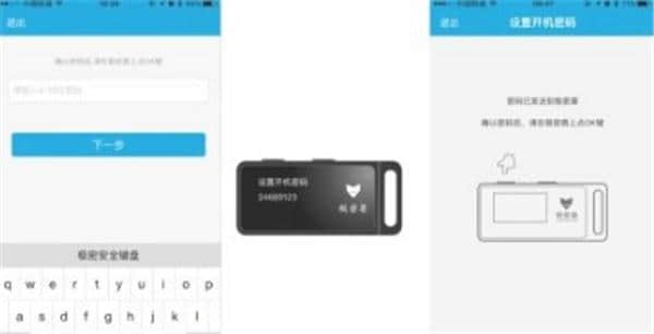 登录成功后,按照页面提示,在极密宝中设置密封盾的开机密码,点击“下一步”,密码将同步显示在密封盾中,点击密封盾中的“确定”完成设置。按照页面提示完成操作。