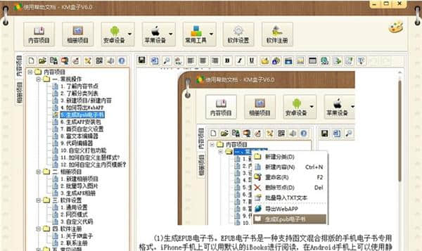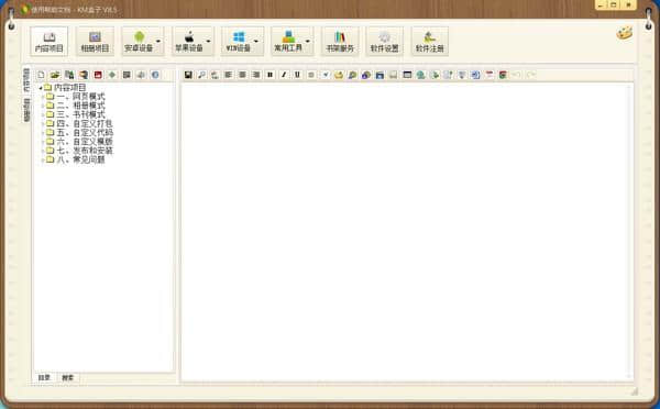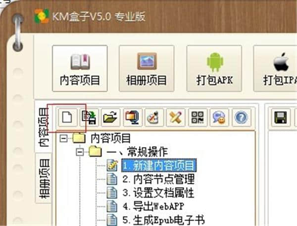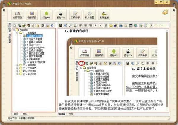 1.打开软件后,默认为内容项。界面如下:左边是树形目录,右边是编辑窗口。