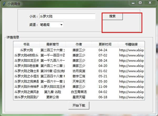 1.下载软件包解压,运行xspc_v1.0.exe打开软件,输入小说或作者姓名,点击搜索。