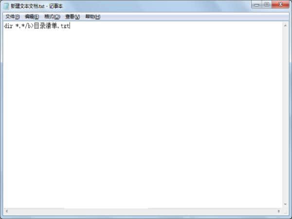 2.输入:DIR *。* /B >列表。TXT,保存文档。