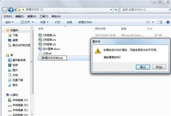 3.将这个记事本文件的后缀名称从txt改为bat。将弹出重命名对话框,并单击是。