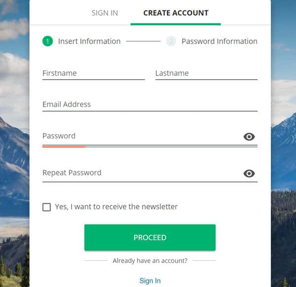 1.打开软件登录页面,点击CREATE ACCOUNT进行注册。