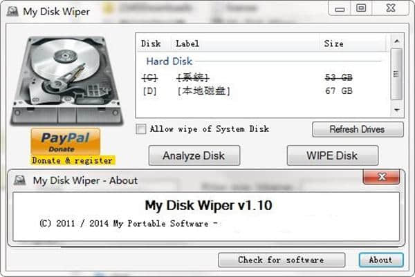 My Disk Wiper免费版免费下载是应用软件分类下一款为你带来更加高效化的硬盘格式化工具电脑软件,创佳软件园小编推荐My Disk Wiper软件下载和使用介绍分享给大家,My Disk Wiperv1.10该款软件应该会让你眼前一亮!欢迎大家下载!
