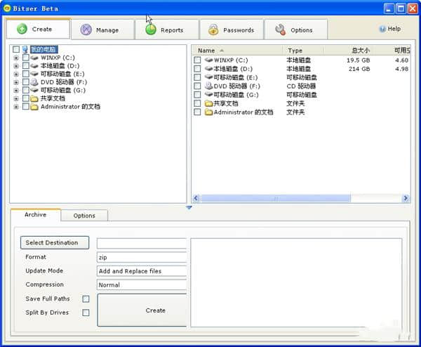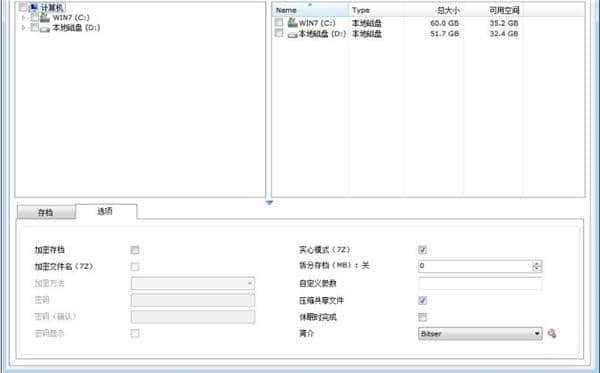 4.创建界面包括计算机、本地磁盘、归档、选项等功能的设置;