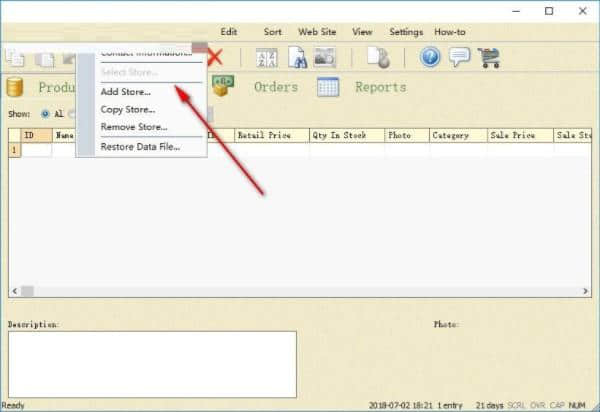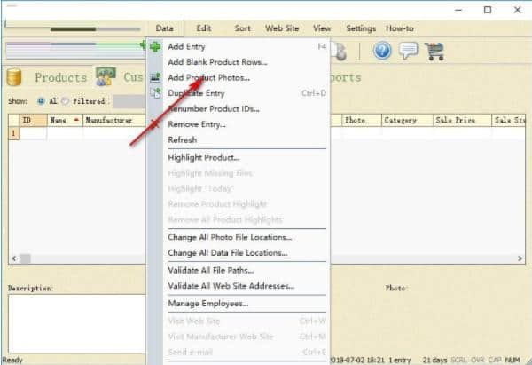 6.数据菜单,您可以在其中加载产品数据。