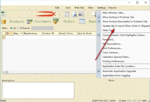 7.在主窗口的功能设置中,允许在产品选项卡中排序。