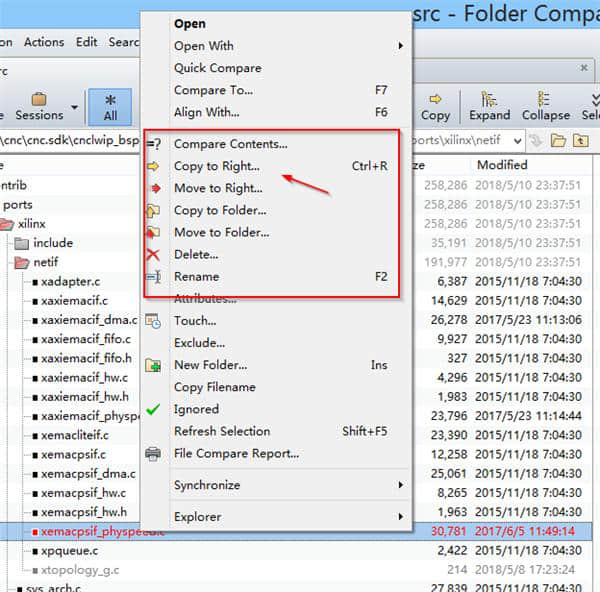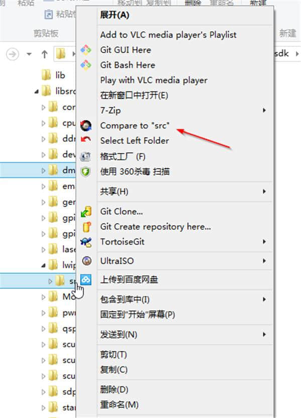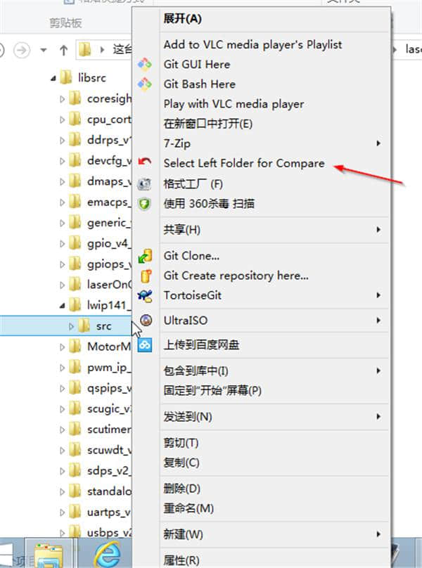 安装文件后,在文件管理器中操作。右键单击第一个文件夹,并选择左侧的文件夹进行比较。