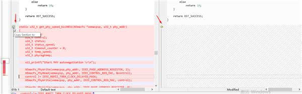点击有差异的文件,如下图所示,箭头表示差异。