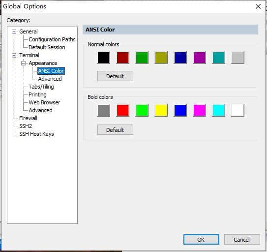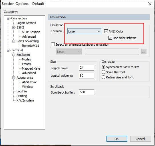 4.终端选择“Linux”并检查“ANSI颜色”和“使用配色方案”