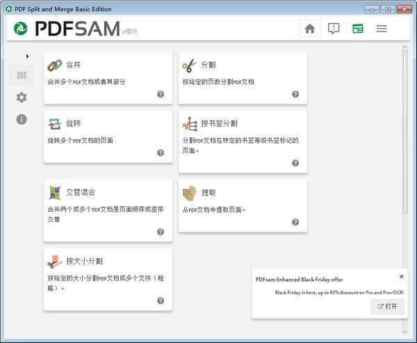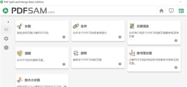 PDFsam Basic软件下载,开源多功能编辑管理PDF文件的软件工具,PDFsam Basic(开源PDF处理工具)可以给你带来很多非常方便的PDF文件的编辑管理。各种PDF文件可以组合、拆分和混合,以及其他实用的开源服务。这里的所有文件内容都可以交互编辑。
